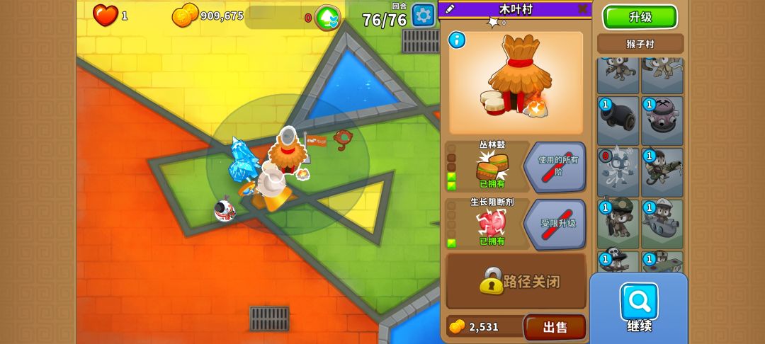有一定难度(有点磨叽,但是能过) 开局000冰猴,下面2个002猴村,最下面的猴村402,230德鲁伊,052冰猴(攻击带全屏冰冻) 005海盗,400潜艇(海盗先出等cd) 76波开局气球走到最右面,放冰猴技能,用德鲁伊慢慢耗(003的德鲁伊藤蔓无视血量),看情况放冰猴技能 77波开始,卖冰猴,卖猴村,卖德鲁伊,出005胶水,有余钱出040海盗(海盗钩子技能无视血量)