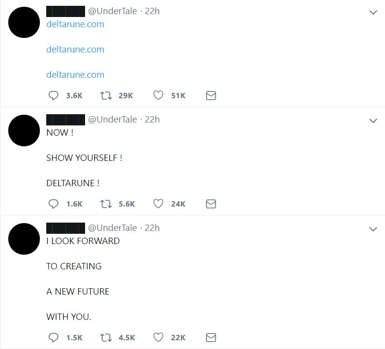 《传说之下》官推连发13条消息造势,开发者公布新作《三角符文》。 文/骗徒零 如果你日常关注各家游戏在社交平台上的官方账号,应该不难发现,除了宣传、新闻、送周边等日常操作,只要它们在某个时间一反常态,那十有八九是有新动作了。 最近《传说之下》的官方推特就当了一次“戏精”,为新作造势。前天晚上,在官推断更一个多月后,突然连发了13条奇怪的消息邀请玩家24小时后再过来看看,他要分享一个“我觉得你们会相