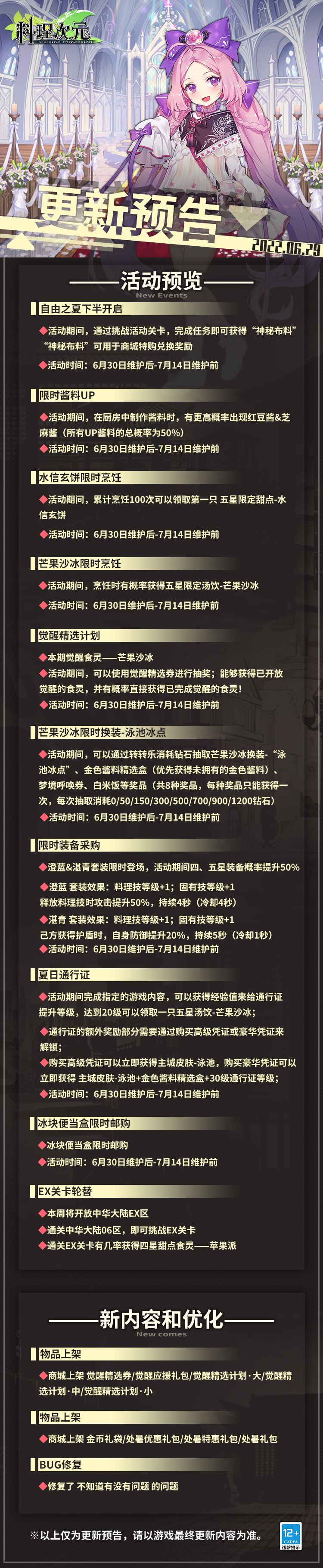 福利满满!《料理次元》6月夏日测试内容曝光!