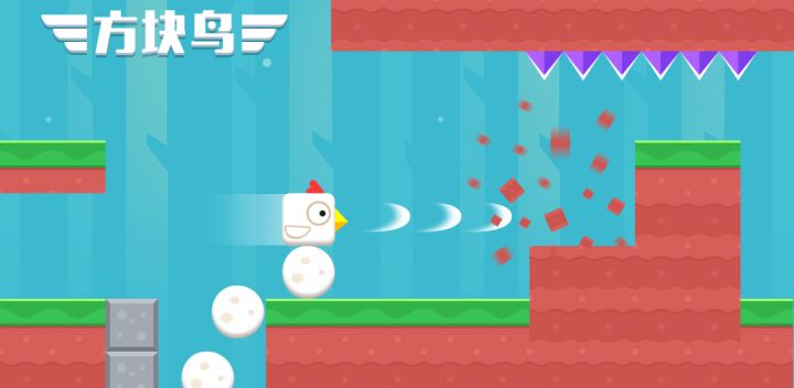 方块鸟是一个休闲跑酷游戏,你需要帮助小鸟重返树屋。游戏中你可以点击屏幕使小鸟下蛋来让小鸟位置升高,利用高度来翻过山川、悬崖等障碍物,还要躲避老鹰、蛇等猛兽的猎杀。你如果技术高超,可以触发小鸟的“完美”奖励,小鸟会发射声波来击碎大多的障碍物和猛兽,让小鸟到达终点,返回树屋。
