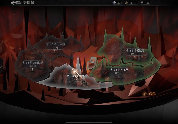 并且游戏中有很多地方风格很割裂,在如此高逼格的背景、场面下,ui粗糙(例如图一的简易地图,还有图里关卡名字感觉文案部已经“绞尽脑汁”了是吧)、字体风格不匹(进游戏“开启巨神书库”几个字与画风不符),暗黑风里要挤出一点怪诞(图二,在漆黑庄重的主城,一个会拥抱人的粉色肉球是关卡进入点。。。?这个玩意的来源展示或者背景介绍下都不会让人满头问号),让人感觉暗黑哥特风走的太刻意,小细节也不敢细看推敲。