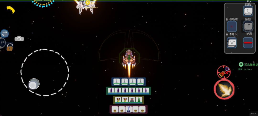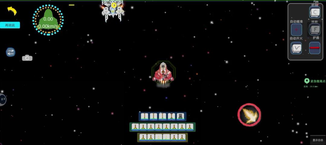 一、舰船介绍: 英灵殿:玩家驾驶舰船(B级舰船)。这艘航母,有着五个舰载机库,两个蜂群导弹发射器,以及五个黄蜂拦截激光,同时还有三个小型护盾发生器,一个中型护盾发生器(左下角),自身的装甲值和血量并不突出,所以我们需要依靠护盾和激光拦截器来进行防御。 坦克I:敌方的三艘舰船(C级舰船)。拥有四个小型武器槽,三个中型武器槽,以及一门专属的巨炮,能够以损耗船体值为代价,发射出破甲能力极高的炮弹(A