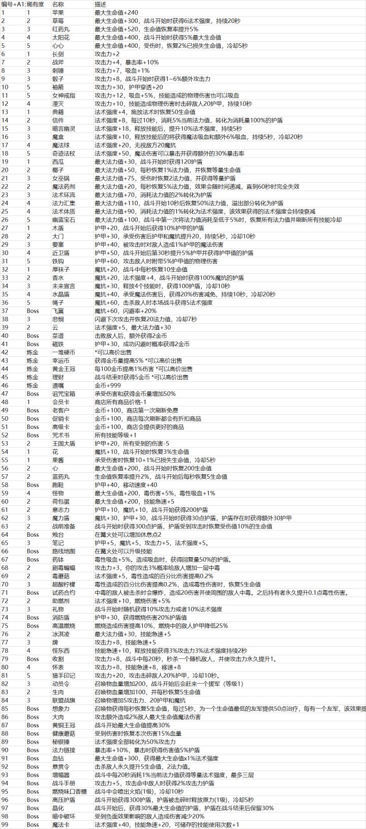 因为时间关系,暂时没能在游戏内置图鉴,非常抱歉给大家造成了不便临时整理了一份文档给需要的小伙伴们,后续版本会尽快补充相关内容