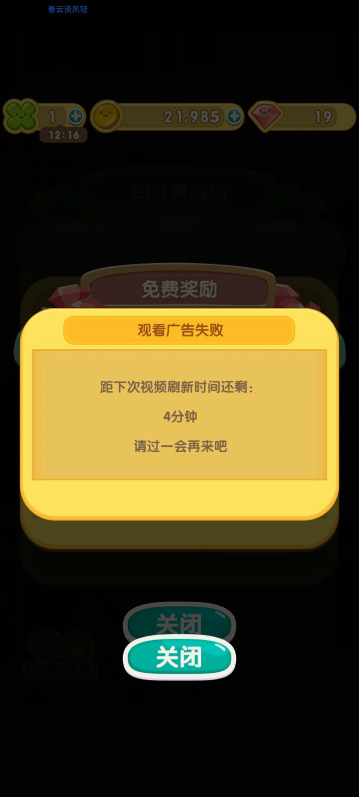 还有一点就是观看广告视频后,它会自动返回登录界面让你再登录。观看广告失败应该是我没给权限