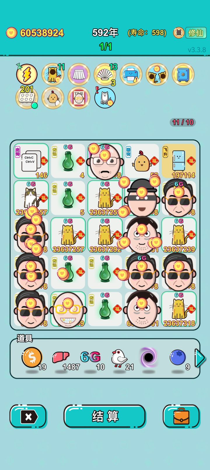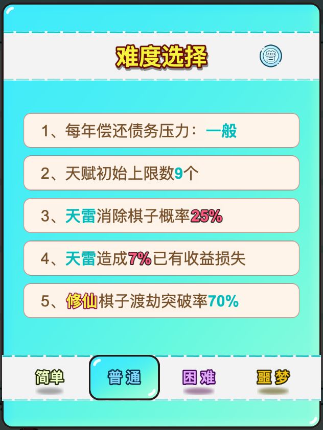 1、新增天赋图鉴;2、新增棋子金基丹,可激活一个棋子的潜质选择;小绿瓶现有30%几率获得。3、调整现在金手指的作弊效果不会给修仙棋子;4、优化黑洞的动画效果;5、优化猫共享潜质的一些问题;6、修复狗和鸡尼后期卡顿的问题。#roguelike #单机游戏 #打工人生