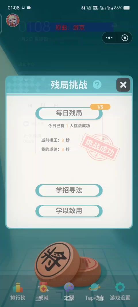 本人天天象棋业9-2,JJ象棋全国第83名,途游象棋积分全国第二,王者象棋最高省冠,全民象棋全国前十,因为不怎么玩从全国第一掉到全国前十了,多乐中国象棋最高神1-1