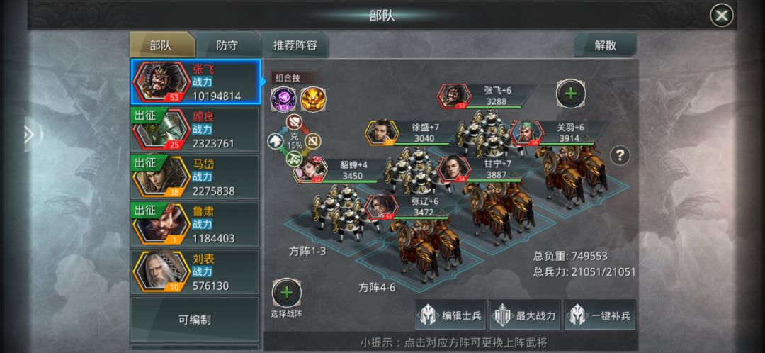标准的大神阵容,特殊武将诸葛亮黄月英是综合奶与输出都非常高,诸葛亮几乎每次技能出手必晕人,特别是黄月英最强奶妈不解释且黄月英还能复活诸葛亮。