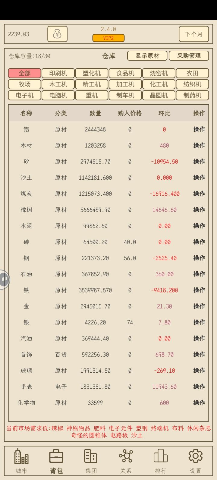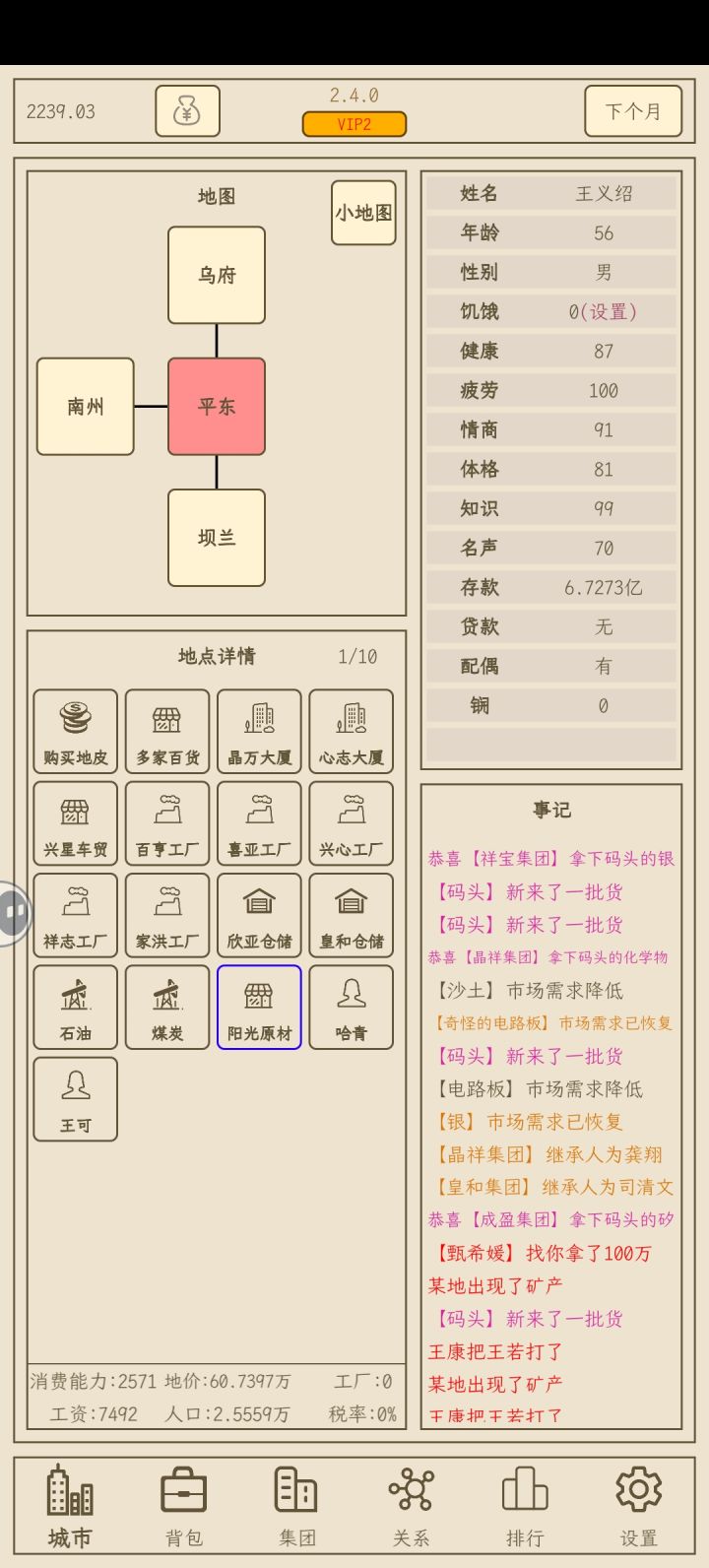 Fly : 作者要是能看见的话,再一个就是,作者能不能搞一个物价涨幅和贬值的一个面板,但是物价涨幅和贬值的频率较小,这样的话更好玩一点