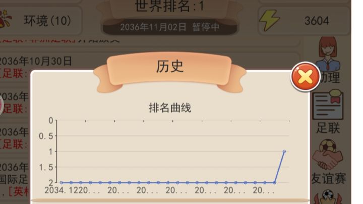 图一图二为目前进度与相关赛事排名,四项升级初期优先存行动点升足球环境,环境影响人物能力上限,建议优先拉满,无额外行动力花销(如升级其他三项)算上广告双倍和广告赞助(图五)大约需要十年的时间,暂无更快来行动力的其他办法。