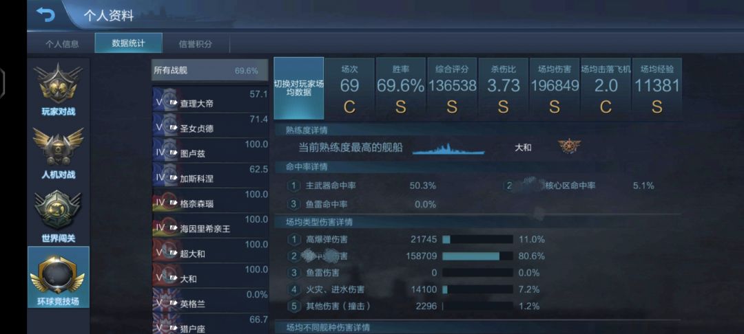 战舰联盟环球竞技场战列舰节奏榜2023.4.20