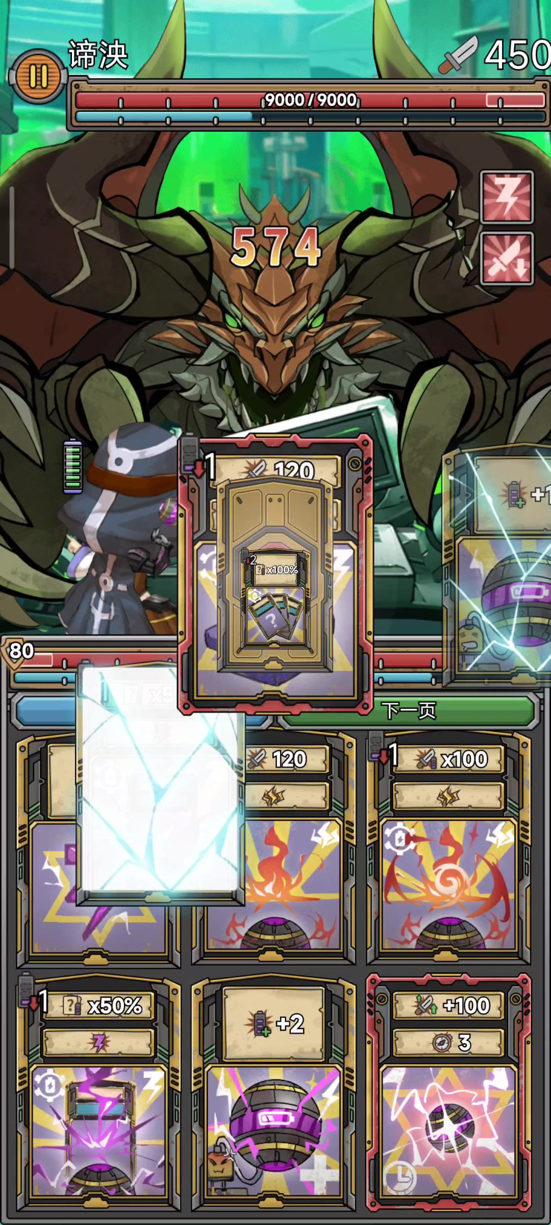 拿了一个红色的卡牌数增加伤害的,第二个boss有20万的盾,直接从30卡刷到100卡,无敌了