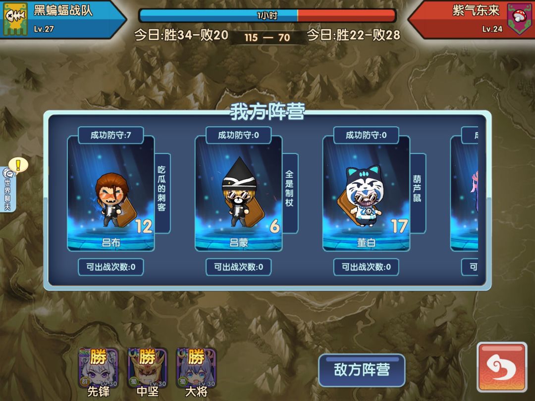 六六这是我小号,许昌大号第一天武道我星彩被对面星彩禁止穷了,汝南大号第一天武道我何太后被对面何太后打劫穷了,体验有点差。(用到了同样的武将,禁选也没啥问题,运气真是狗屎) 队友是马云禄十回合左右看到局势不妙,竟然自己退出游戏了。也没落后太多,而且潘凤马云禄属于后期武将,前面回合被揍趴下也正常。 不过我有他账号登录,看到离线状态,自己赶紧补上他,继续打。
