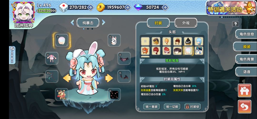 下面是第二版的(感谢四夕大佬提供的服装图),加入了一些新出的服装。金币套装和积分套比较少,而且属于特殊用途,不在累赘。主要属性分:暴击、爆伤、减暴击、减爆伤、加过路费、减过路费、专武7、减专武10、血套11、初始资金。 补充一个前提,个别角色可使用的武器不考虑。个别大佬定制的服装不考虑。妖刀也未考虑在内。 ①暴击。头和衣服男女对应,其他通用。新服装衣服部位都出了一个只+5%会心率的。全套比较便宜且