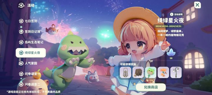 我大致看了一下,第一天的位置没变,我已经拿了不好在拍照片,所以把之前的拿过来用一下。(如果明天要是还是之前测试那个位置,我就把接下来几天一起发了。)(看了一下,位置感觉应该不会变了,如果后面改了位置我在更新。)另外,这次测试活动与上次活动相比,给的叶子多了50个,同时东西的价格也提高了点,不过物品繁荣度提高了不少。而且活动时间大大放宽了,方便不同时间段玩家完成任务。已经总结了上面内容,那下