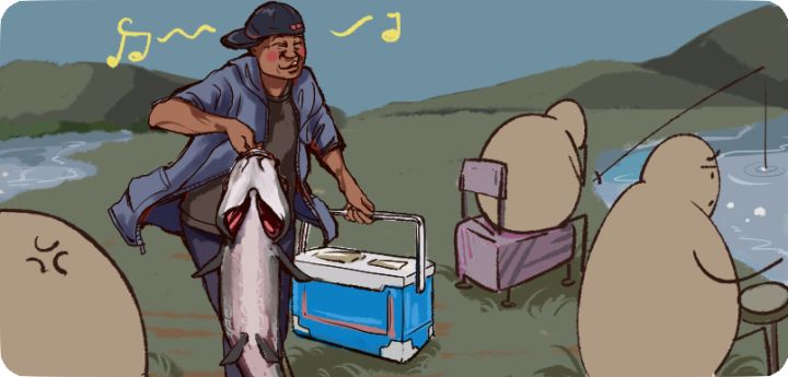 不然就只能跟我一样,坐在紫色钓箱上摸一天下巴。