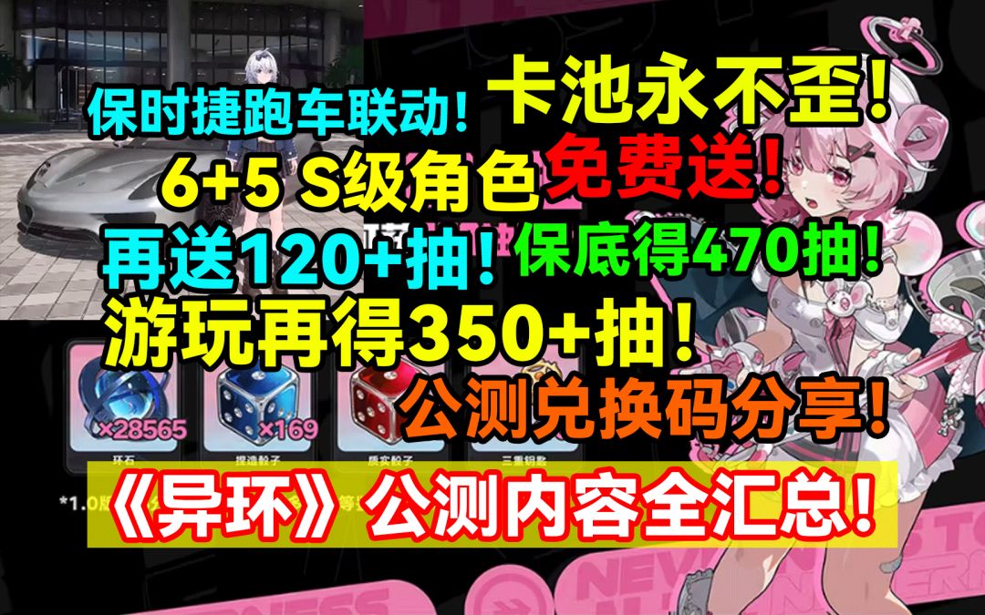 卡池永不歪!6+5S级角色免费送!再送120+抽!保底得470抽!保时捷跑车联动!异环公测兑换码分享!异环公测内容全汇总!【异环】 #异环 #异环公测定档0423 #异环公测前瞻 #异环娜娜莉 #异环浔