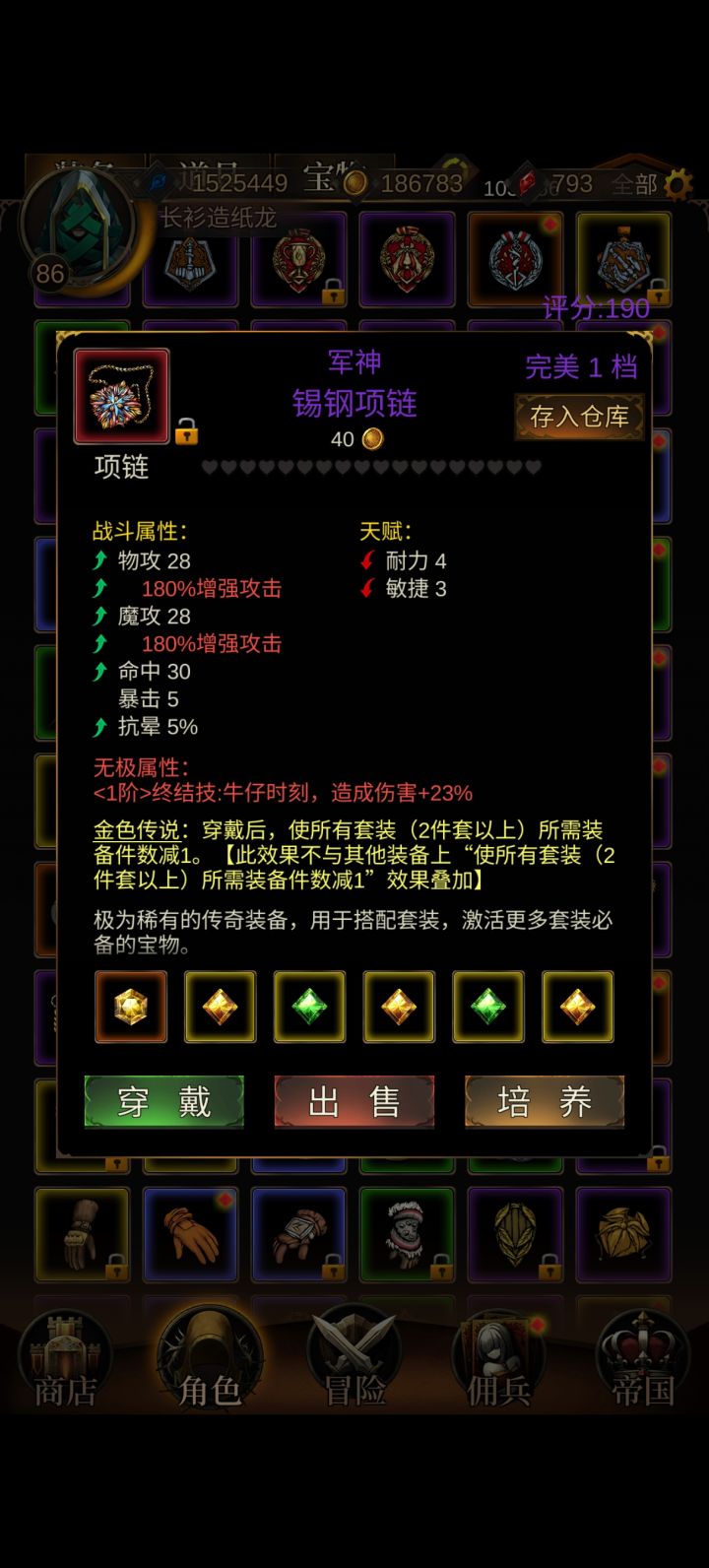 军神到处都掉,打魔王就行,实在不行存点银片去藏奇宝箱换。你可以带末日未来套装试试,那个给的攻速多。耳环如果有燃烧,就带两个燃烧