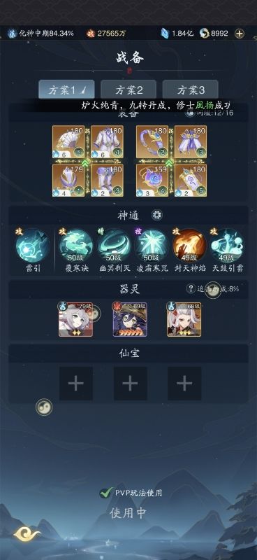 当然,游戏也是有不足的,比如每日妖邪现世不能自动参与,但开放时间确是在饭点,偏偏那五个金辅材还挺重要,每日仙膳也是错过了就没,不给补剩下就是卡资源的氪金点器灵也就算了,不氪金红器灵没歪就算成功,后续纯看天意,毕竟这是游戏主要的氪金点,也是战力最大的差距。但是功法这种真就卡到死了,我到化神了我的三阶功法都没有点满,几十万的功法点都在等功法要诀,这玩意最稳定的获取是500造化的每日礼包,剩下的古宝和神通也卡,但都没这么难以接受