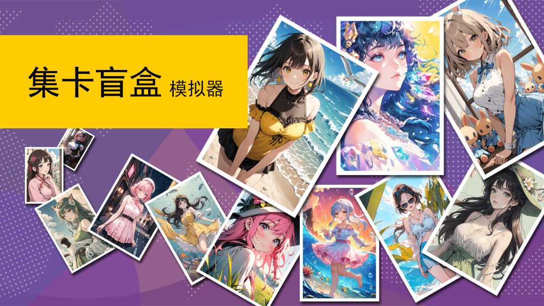 这是一款模拟开盲盒收集卡牌的单机游戏,游戏内置大量二次元可爱老婆素材,获得的素材可下载到手机收藏。点击赚米即可增加金币,消耗金币开包增加经验,经验累计到上限后提升等级,等级越高爆出SSR等稀有卡牌的概率越高。