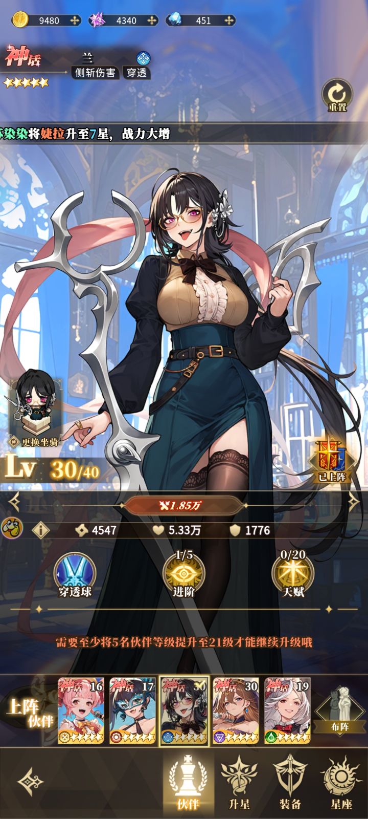 立绘很顶的二游,悠闲的玩法挺轻松的,可以偶尔拿出来玩一下,也不逼氪,开局就拿了几个神话角色。