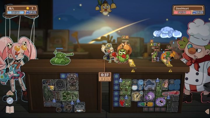 召唤物就是在能桌面上战斗的玩具,它们一般都有重量。负重有限,所以不能带多。气球可以增加负重上限。物品还有像是扑克、纸、水、火、风/雷这样的属性。可以通过符合规则的合理摆放来获得更多的增益。属性有点多且杂乱,要弄清系统并上手大概得打个一两场。