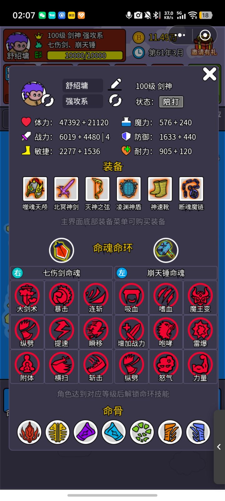 有些小细节没处理好,还能再多一两百分选择双金身双流星雨,搭配瞬移减CD,复活保命。有的关卡还需要搭配置换,躲近身禁魔。至于其他的伤害类技能加成类技能,由你们自由搭配前期最快发育,看两个广告,命魂选蓝电龙和香肠。这个搭配是基础数值最高的。到30级,再看几个广告,选金身瞬移毁灭杀,香肠也可以再来一个金身,这样就可以越级战斗,提前拿魂骨,加快发育速度。到六七十多级就可以去无尽海域拿最后一块魂骨,然后