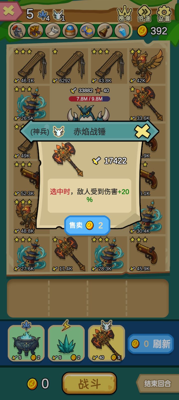 蛮有新意,不过要是能设置自动卖出就好了。我这可以无限挂机下去,加上卖3星可以全体加5攻击,和开始战斗群是50%血,攻击翻倍。