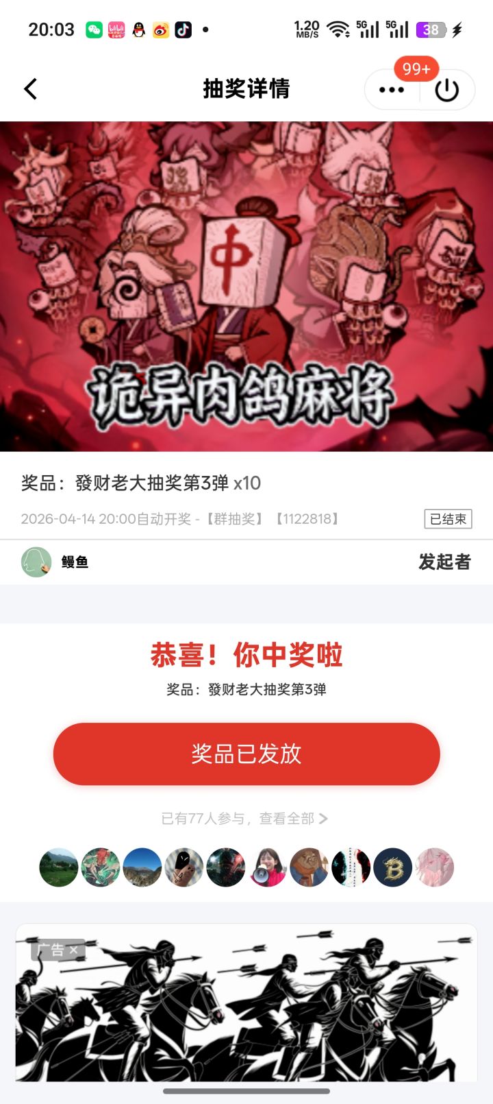 前期广告恶心。有下载的安装还有领不了奖励的 不过后面有免广 40次局内免 抽奖有几率欧皇卡 或者非酋卡 永久免 玩法就是爽 做大牌