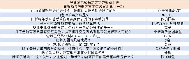 狸狸汤泉答题之文字类答案汇总
