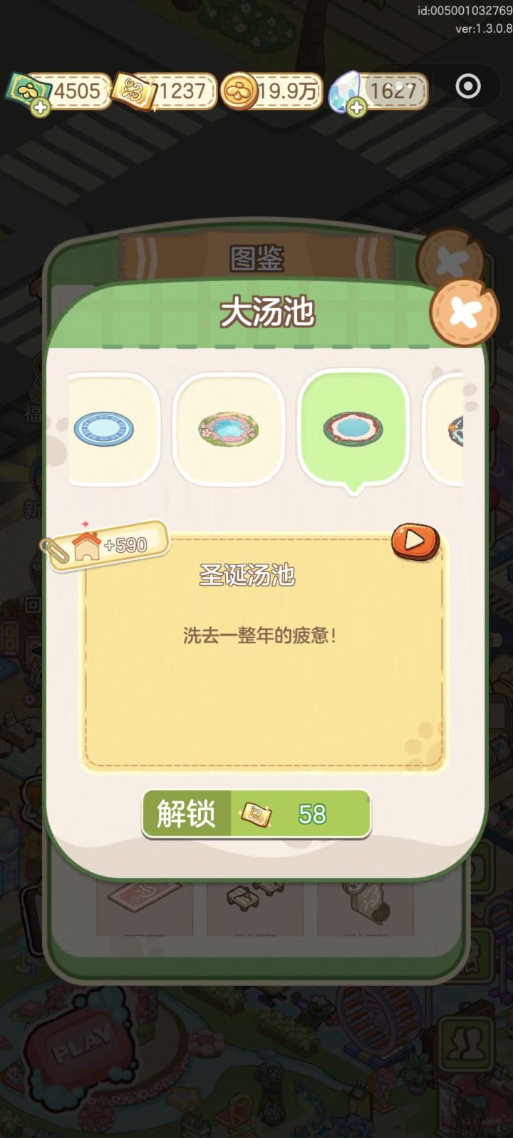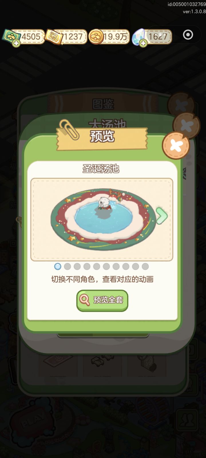 算是攻略吧?教大家如何查询图鉴。 只要你拥有了该家具,如开局就送的【汤泉】,注意是只要拥有这个家具,哪怕你没有拥有这个家具的其他皮肤也没关系(如图,我就没解锁圣诞汤池),都可以在【图鉴】内预览互动。 所以很简单,步骤就是:1.看题目问的是哪个家具。2.确定自己是否拥有该家具。3.打开【图鉴】查询即可。 ps:现在全部的家具互动都可以在图鉴上查到啦。如果有没有解锁的家具可以在xhs