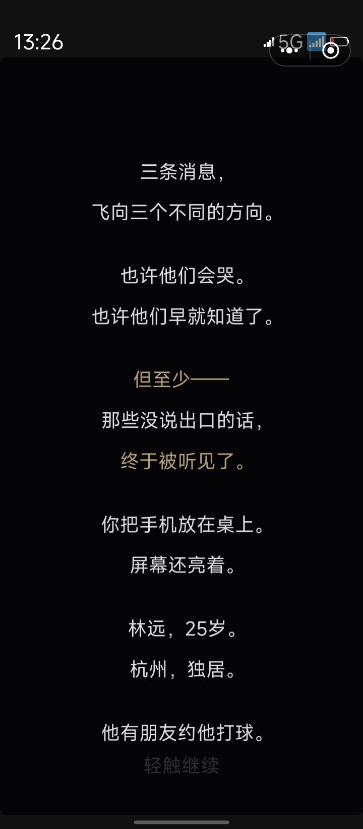 最后在讲一点关于最后选择的话吧,其实对我而言,这两种选择都是bad ending,选择发出这些消息,会让我认为何必呢,事情已经发生了,让人知道只会徒增痛苦,林远既然选择了默默离开,那我们作为旁观者就应该尊重他的选择。但是如果选择格式化手机,我作为一个现实的人,我的精神和道德感不允许这样抹除这样一个曾经存在的人的痕迹,如果真的让我来选的话,我会选择顺其自然不做选择,保留一切,正常的使用这部手机,就当我也是林远替他活着。