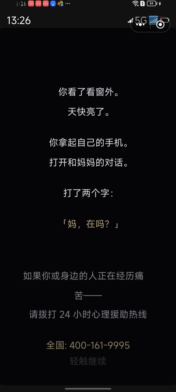 扯的有点偏了,作为一个简短的文字游戏来说,我认为这部游戏是成功的,虽然结局在开场的时候就一眼望到头了,卖出的手机,越来越晚吃的饭,再也没回过的消息,接不了的电话,不是不想接也不是不能接,但就是接不了,无一不揭示了主人公的结局。当然,从实际生活角度,这部游戏对精神抑郁患者的表达还是有一定欠缺的,在主角选择自杀之前是应该有一个回光返照的,会突然变得很好,让所有人都觉得一切都在好起来了,包括主角自己,可以把所有事情都处理完,然后弦突然崩断,选择最后的结局,这才是一个正确的发展流程。看到有人说林远自杀的太仓促了,就连 抑郁患者从确诊抑郁到自杀都没那么快,虽然从林远自杀前的表现来看,他的病情没有严重到选择自杀的地步,他甚至只需要两片安眠药,睡个好觉就可以了,但这是旁观者清,作为林远,他已经累到没有办法去正常的活着了,自杀是最快也是最轻松的变轻松方式,也是他当时的唯一选择