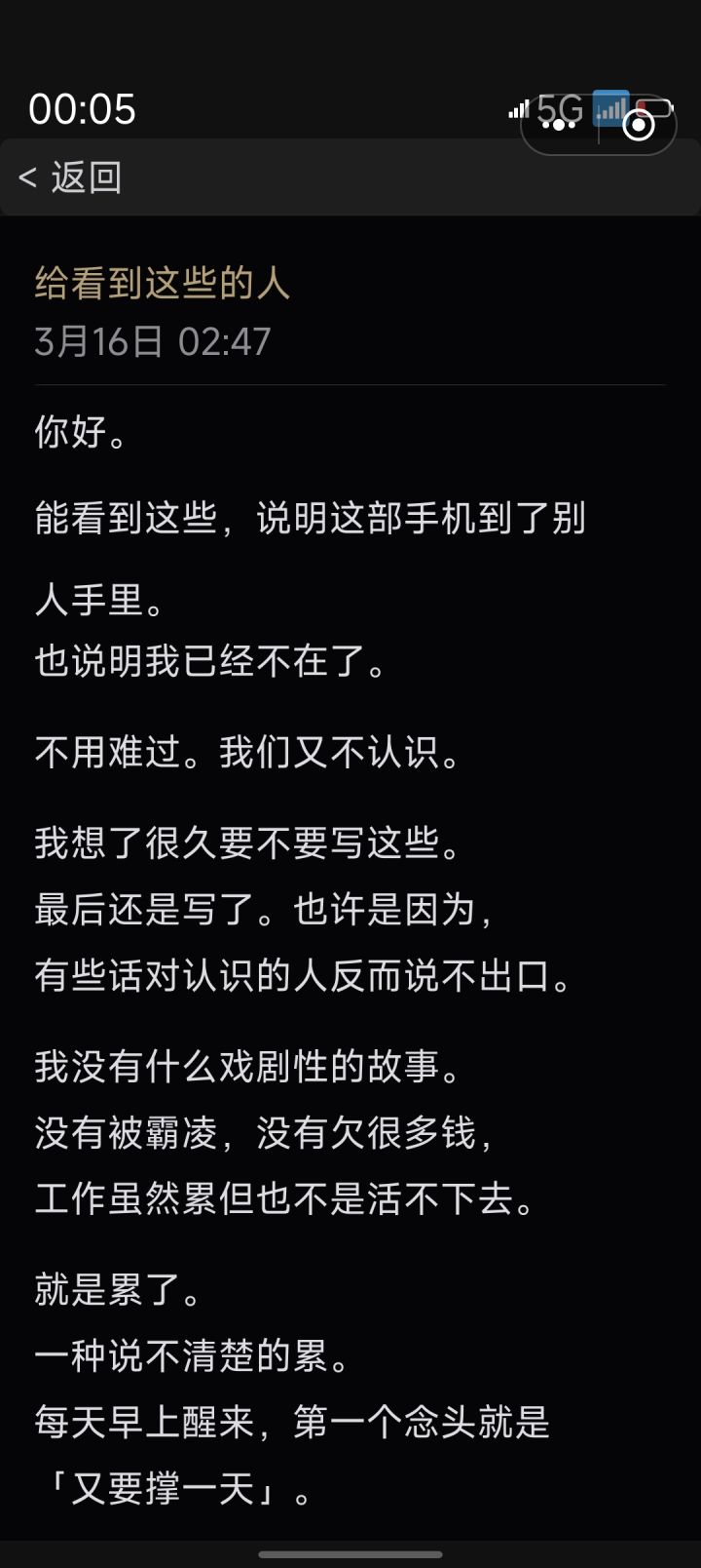 看完这些应该也有朋友会发现我自己也是一名精神抑郁患者,当然,不要担心,我还没有到和林远选择同样结局的地步,我还有我的自救手段,比如在写完这些话,凌晨五点的时间去骚扰我的朋友。