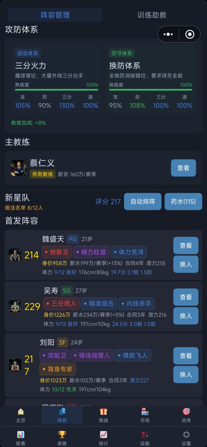 挺好玩的,初期比较难,尤其最开始三个联赛级别。等教练等级起来,建设完善后,就比较舒适了。替补不要太多,太烂的替补不要,不用触发工资帽也可以晋级。选秀是关键,可以卖体力最后一名选秀,2-3赛季就翻身了。感谢群里大佬指导