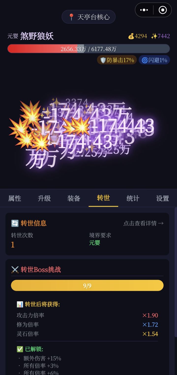 很好玩的休闲娱乐放松小游戏 其实我玩下来觉得转世也没他们说的那么难打 说下我个人的一点建议是 到了元婴就不要再升了 就卡着把转世BOSS打了 然后再转世不要怕重头再来 打了转世BOSS有加成升的很快 再就是转世到了元婴大成再去打转世BOSS 就能晋升下一个化神境界