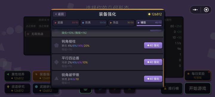 如图,武器和防具其中一个点满了,剩下的没法再升级了