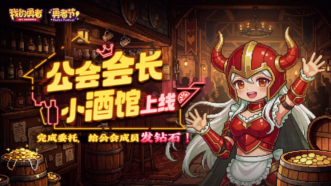 亲爱的勇者们,我是铁匠! 勇者节马上就要到了。 在这个狂欢的节日里,勇者城里有个神秘的小酒馆在微信小程序【我的勇者wiki】中偷偷开始营业了。 据说这是只有公会会长和副会长才能进入的地方,里面还有神秘的牛头娘。 会长们只要完成羞耻play的任务,就能给公会全体成员发钻石(还有这种好事) 全公会白拿钻石的二维码和消息如下,大家快转发给自己的公会q群和微信群,迫害自己的会长吧! 会长出征: 请公会会长