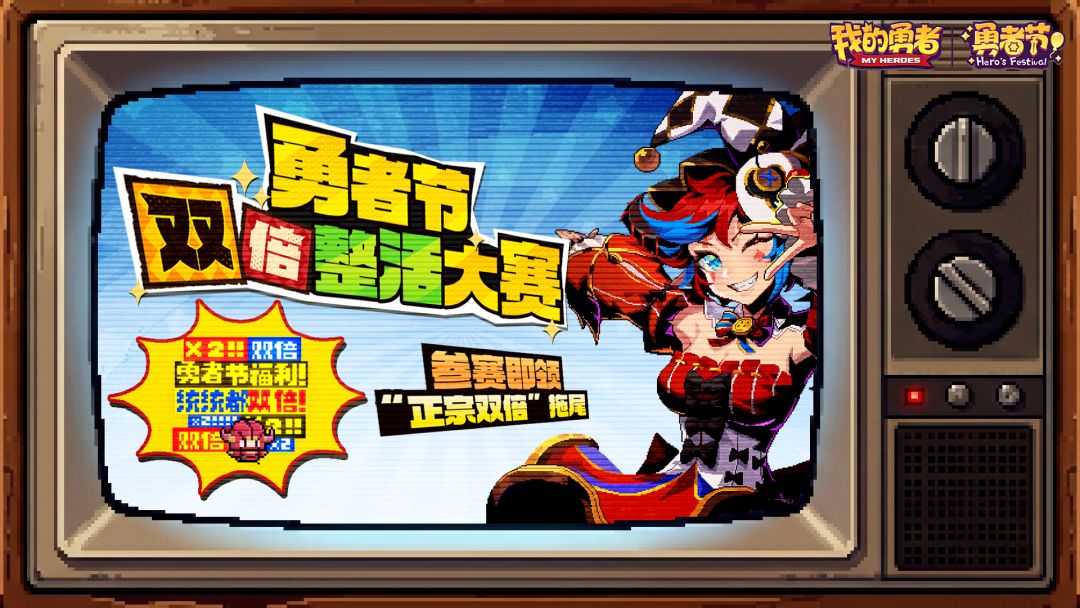 勇者们上午好下午好晚上好! 这里是勇者电视台为您带来的特别节目, 勇者节双倍整活大赛的直播现场! 在节目开始前—— 双倍福利大赏视频看了吗?👀 双倍直播间的抽奖参与了吗?👀 铺面而来的勇者节双倍气息,有感觉吗?👀 别忘记每天中午12点,锁定《我的勇者》直播间 每天都抽一位天选勇者送一万钻石! B站平台: 言归正传,我们大赛的口号是! 饭可以不吃(可得吃呐); 觉可以不睡(早睡早起身体好); 活不