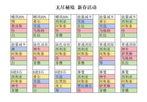 一,在无尽秘境新春活动之前,我也是属于瞎几把乱打的玩家之一。二,在无尽秘境新春活动的影响下,逐渐对构筑无尽秘境的阵容有了一点模糊的认识。三,由于发现新春活动18关中“伶”出现了11次,因此推测以“伶”组的阵容不会差。四,经过一个月的阵容调整,也基本验证了“伶”的实用性。