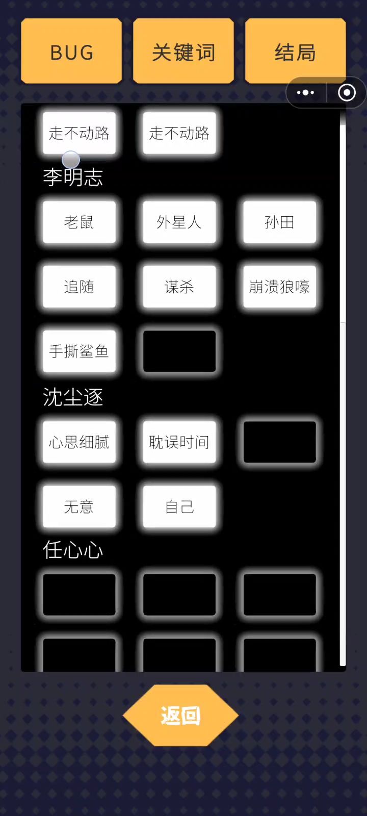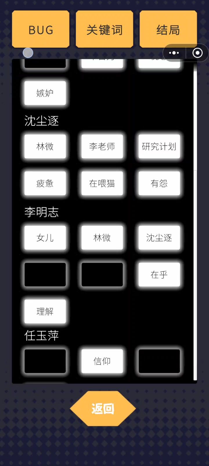任心心是之后正式版的人物吗。任玉萍和薛真又是?感觉有点印象又没印象的感觉。以及第一次的时候那个引导者说没找到bug,还以为第一次和她对话的哪个选项可能可以触发bug( Ꙭ)