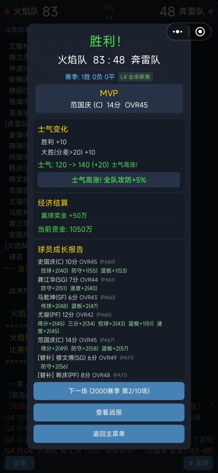 🏀 这篮球游戏也太上头了! - 从赛前排兵布阵、转会补强,到赛中节间换人、实时看比分跳动,每一步都有参与感,完全沉浸在带队冲冠的热血里!- 替补奇兵逆袭、大胜涨士气还解锁全队攻防buff,赛后看球员成长报告的成就感直接拉满,赢球的爽感太真实了!- 业余联赛一步步往上爬的养成感太戳人,资金积累、球员升级、赛程推进,越玩越想带着火焰队拿下总冠军,根本停不下来!