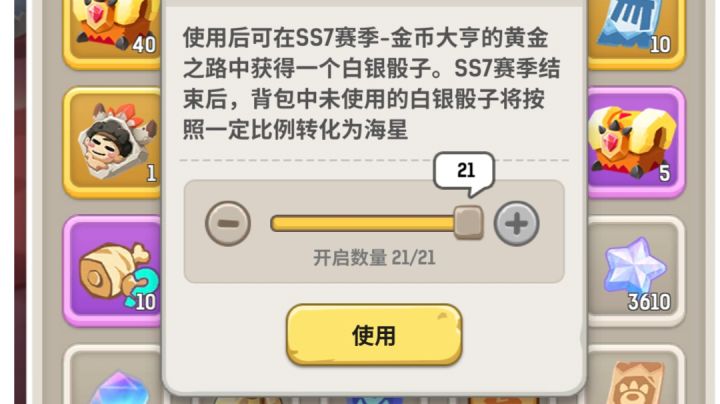 体验了ss7后最大的感受就是玩法简单、容易上手,挑战boss和卖水果交叉来也不会特别枯燥。同样是骰子玩法,本赛季和以往骰子赛季存在明显调整能感受到官方的诚意,但还是有一点小建议:以往赛季活动道具都是*1使用,这赛季骰子*3行动一次真是不太适应,消耗三个道具看着屏幕上扔一个骰子感觉怪怪的,希望后续赛季能进行调整吧。