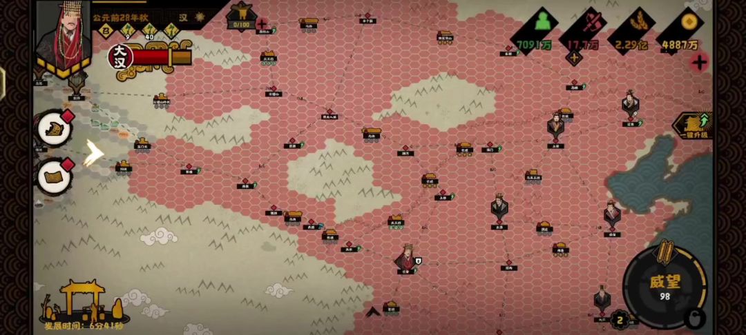 刚打到武威,匈奴一直来打我中路长城,兵都给我打没了挂机等兵一上线,怎么着,他兵力从之前300+变成了600+!