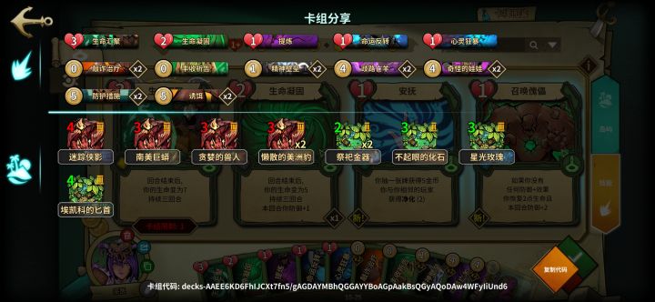 大家好!这里是一个连肝两天的老萌新,我想向大家分享四套我自认为很强力的卡组,在此如果有隐藏大佬认为此卡组有缺陷或有更好选择,欢迎在下方评论发表看法。那么废话不多说直接开搞!1.苟命巫医流卡组需求:★★欢乐程度:★★★卡组强度:★★★萌新推荐指数:★★★★★苟命巫医流,顾名思义便是要在混乱的夺宝战斗中活下来,但是那些伪君子们打着虚伪的旗号想要和我们一起分享财宝,那我们便要在前往宝藏的路上
