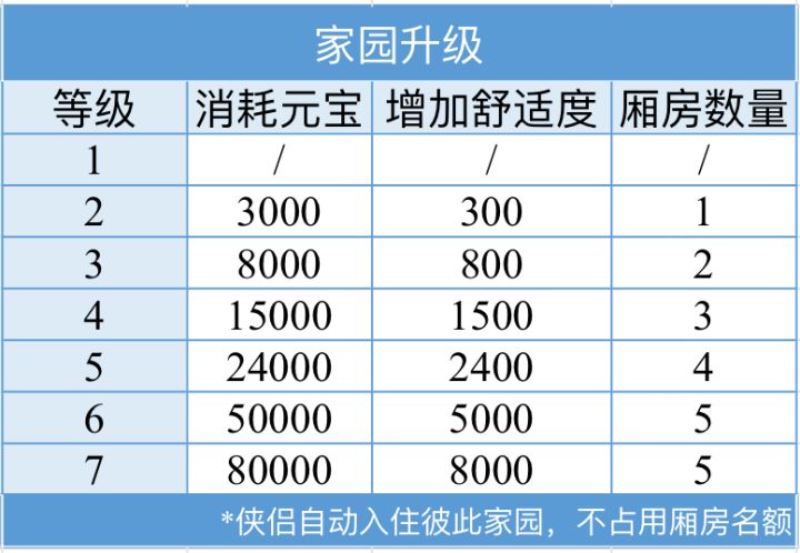 家园,是一个让人又爱又恨的系统,众人爱它的温馨温暖,爱它的自由装扮,爱它的打坐获得;也恨它的材料昂贵,恨它的耗时耗力,恨它的虚战鸡肋。但,所谓“黑红黑红”,正是这样,家园成为了一个贯穿游戏始终的话题。接下来就跟着可甜一起来看看这个系统吧!一、升级接取“家园任务”并做完后,会得到一个1级家园,舒适度为0。消耗一定数量的元宝和时间即可对家园进行升级,获得更多特权,目前最高家园等级为7。在家园内