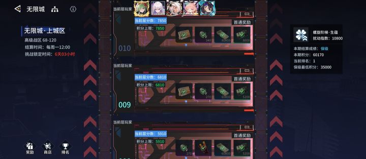 非最优解,仅供参考,仅适用官服的高级战区上城区仍然建议选用叠叠乐阵容为基础,黛灵,矢车菊,弦枝/艾可,聆风。 新版无限城主C最强的是白蔷薇、红叶,不过白蔷薇日常被BAN,还是红叶用的多。无限城带有一定随机性,有些小区是5800%血量,非常阴间,这期我在的区是4200。如果不幸分到比较阴间的区,叠叠乐练度没有千兆水平的话,佛系吃个低保就好,在意保级就周末补一下分。阴间区满分对练度要求很高,