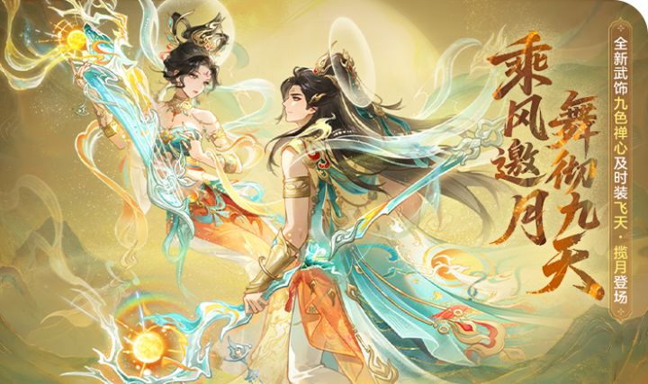 当风沙从莫高窟处吹来,衣袂流转间,长安各处开始流传“飞天逐月,鹿鸣禅心”的古老传说。这是跨越历史长河的回响,将敦煌独有的灵动仙气,化作触手可及的浪漫。 全新敦煌主题时装「飞天·揽月」与武饰「九色禅心」,即将于本周版本更新后上线! 乘风邀月,舞彻九天。千年一梦敦煌曲,独向长空舞碧宸。 ♦时装:飞天·揽月♦获取方式:活动「浮梦岚织」中获取 男装上半身采用袒露设计,通过金属臂钏强化角色力量感