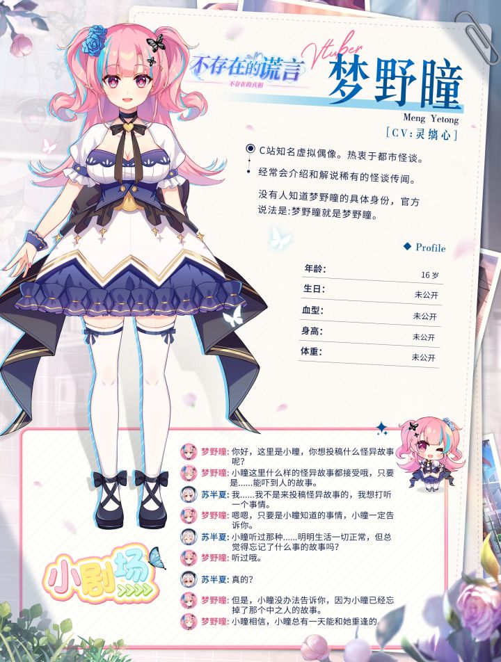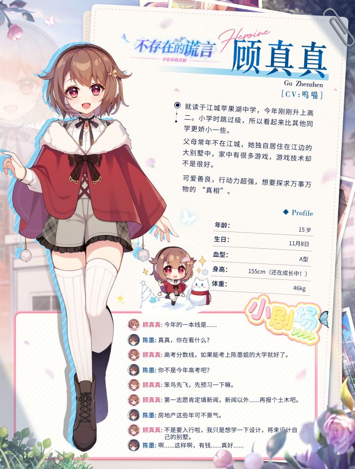 呀呼~欢迎大家回到小瞳的直播间!距离我们新篇章开启已经进入倒计时了呢,那既然是新篇章,那校友录也要做一波更新呀。第一页仍然是小瞳自己呢,那么请看——小瞳期待和你在新篇章中相见!大家对小瞳的印象有没有什么改变呢?(剧透是绝对禁止的哦!)官方交(guan)流(shui)1群:519900748官方微博:官方B站:#不存在的真相 #不存在的谎言 #游戏讨论 #游戏推荐 #游戏安利 #国产