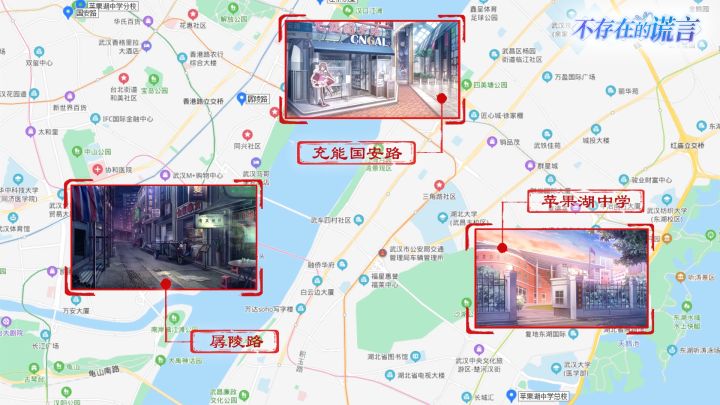 呀吼~!欢迎回到小瞳的直播间!今天的直播主题是久违的都市怪谈呢~在6月21日即将公测的《不存在的谎言》中,大家将会见证在江城这个九省通衢之地上演的魔幻现实故事。其实江城就是一个以武汉为原型设定的半架空城市啦,顾韦与苏半夏生活、学习、调查怪异事件的地点都可以在现实中找到地点相对应哦!顾韦与非日常部的伙伴们所在的苹果湖中学总校,与苏半夏所在的苹果湖中学分校,在江城市的坊间传闻中可是一所妥妥的“上流