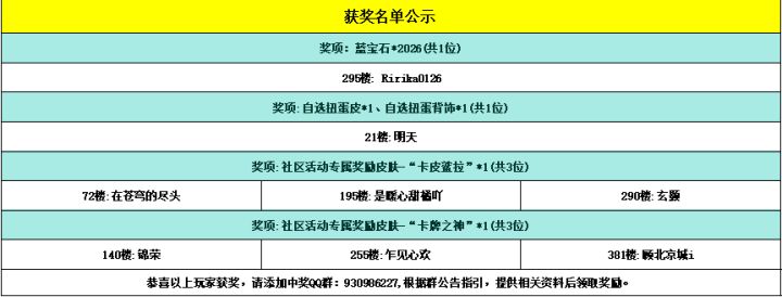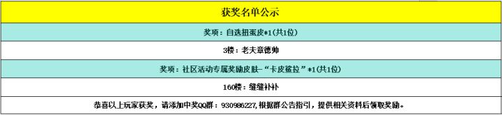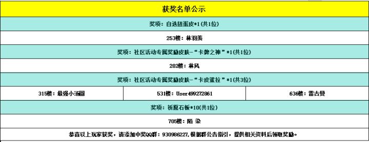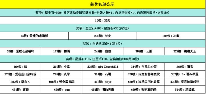-------------------------------------------------------------(中奖名单)--------------------------------------------------------恭喜以下幸运的小骑士获得活动奖励,请中奖的小骑士添加获奖群:930986227,请加获奖群后,登记相关获奖信息,超过15个自然日未进群未登记视为放弃奖励